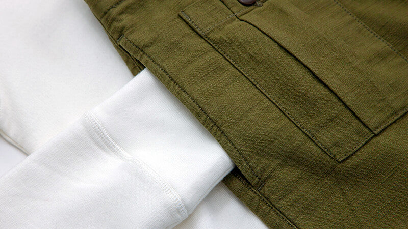 Our clothes are made from exceptional materials—Japanese selvedge denim, French wool from Tournier, etc.—and assembled in our workshop in Toulouse on traditional machines.