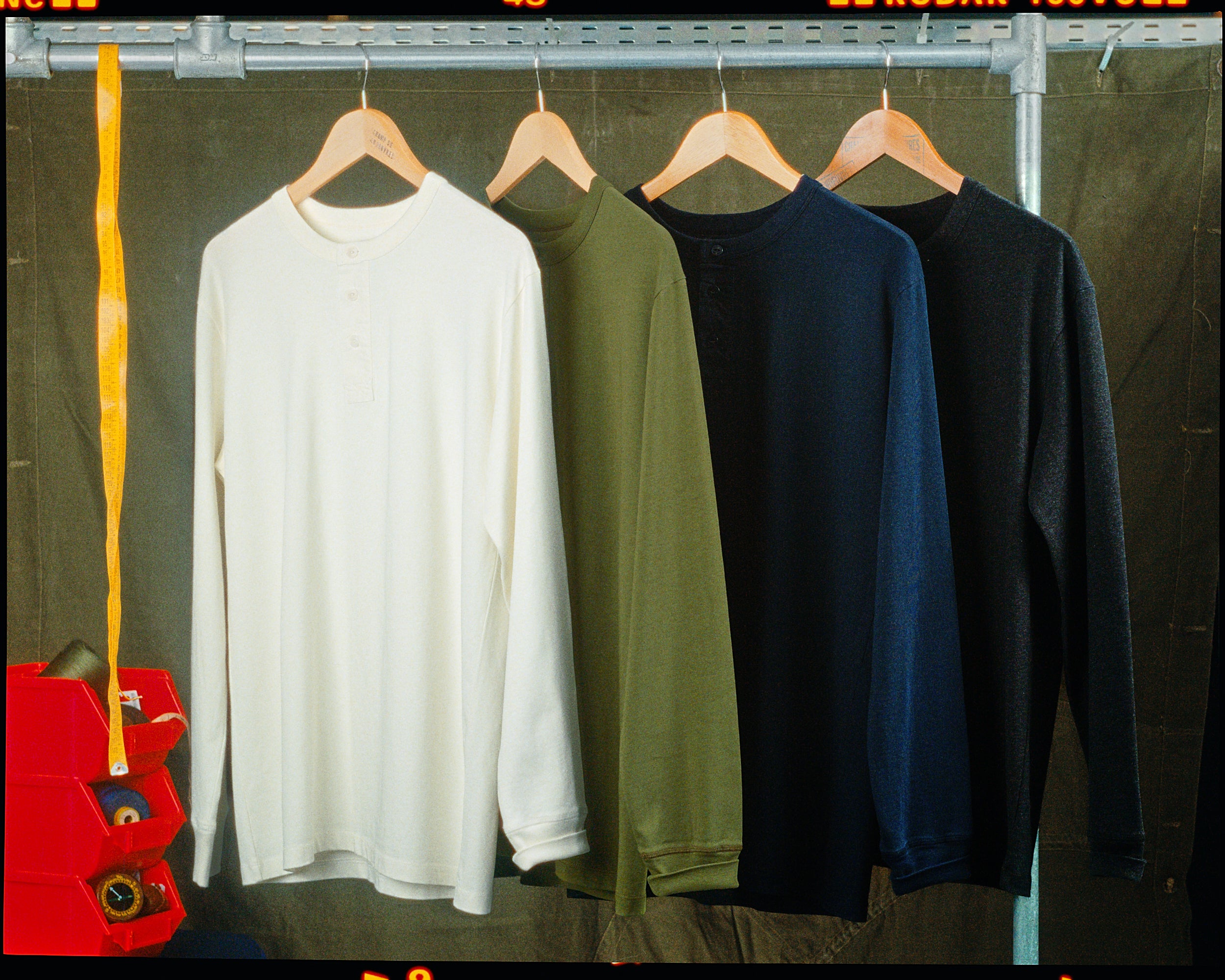 Chaque pièce est pensée pour durer, évoluer et se patiner avec le temps. Les tissus sont développés sur mesure : nous imaginons nos propres trames, puis les faisons tisser dans les meilleures manufactures du monde (Japon, France, Italie, Portugal, Maroc), souvent sur d’anciens métiers à tisser. Ce processus peut prendre jusqu’à un an pour aboutir à une nouvelle étoffe.