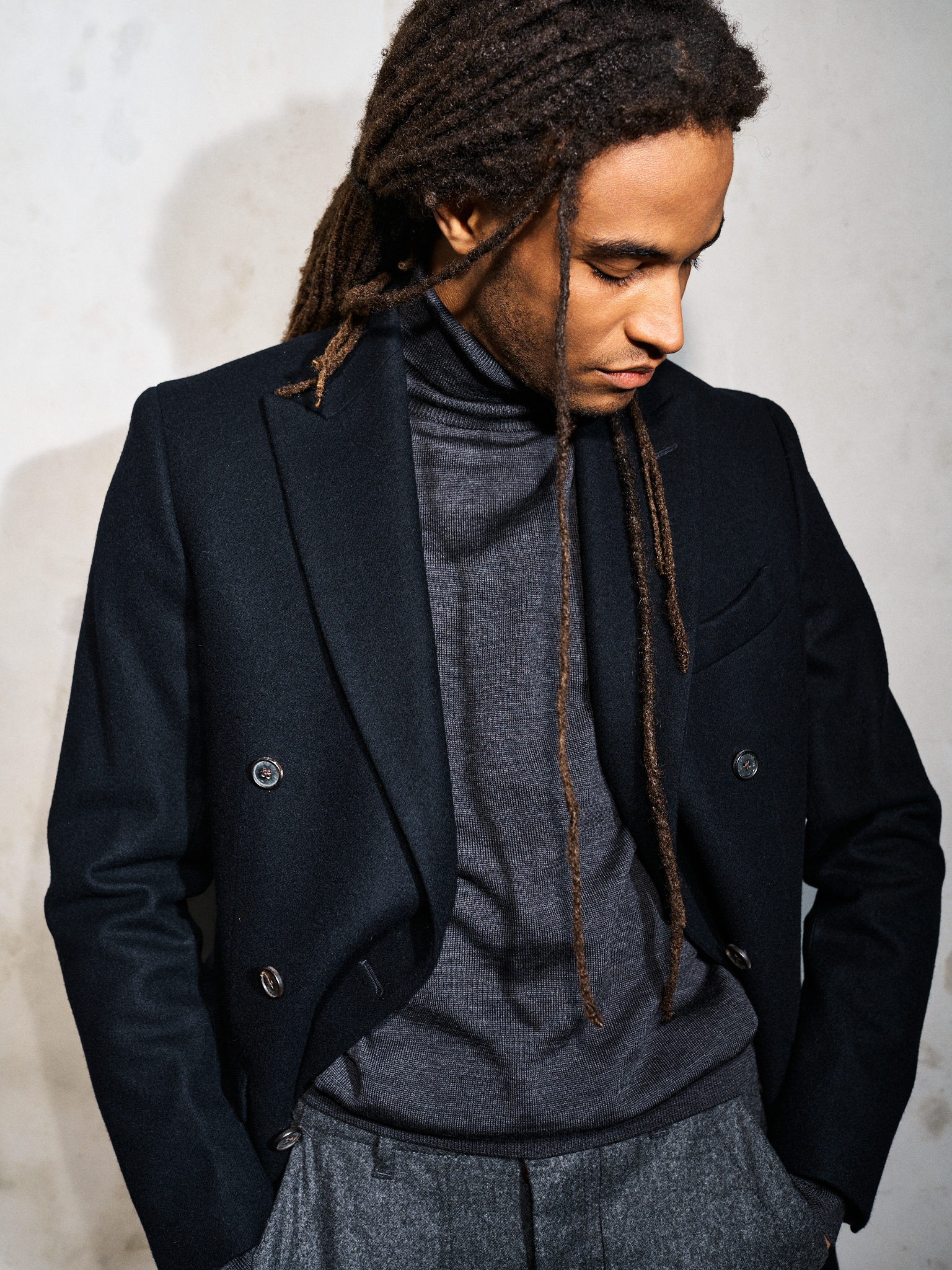 Nous réinterprétons l’uniforme dans une version apaisée et contemporaine. Une ligne structurée, fonctionnelle, portée par une idée de rigueur silencieuse et de maîtrise des volumes.