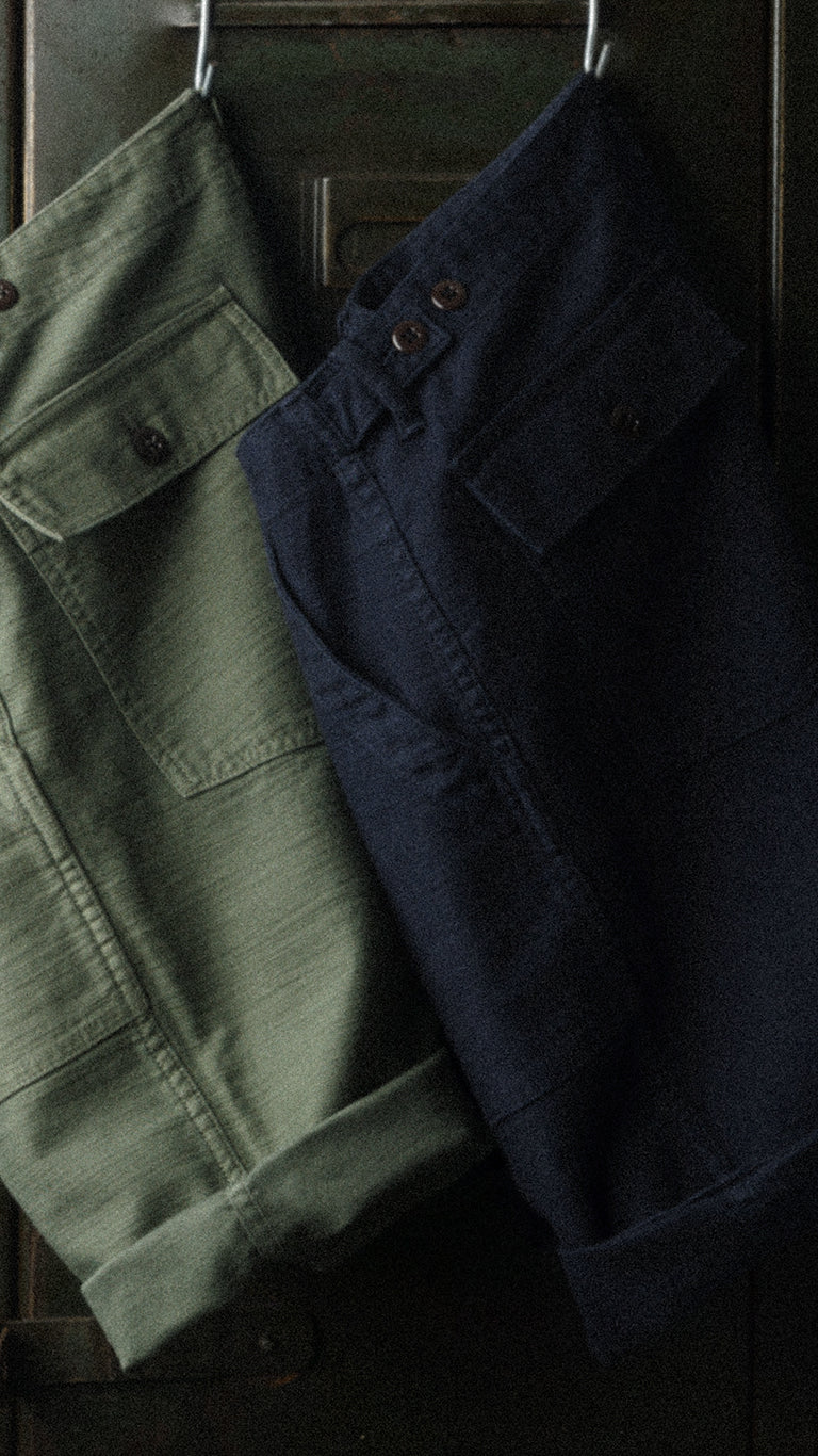 Chaque pièce est pensée pour durer, évoluer et se patiner avec le temps. Les tissus sont développés sur mesure : nous imaginons nos propres trames, puis les faisons tisser dans les meilleures manufactures du monde (Japon, France, Italie, Portugal, Maroc), souvent sur d’anciens métiers à tisser. Ce processus peut prendre jusqu’à un an pour aboutir à une nouvelle étoffe.